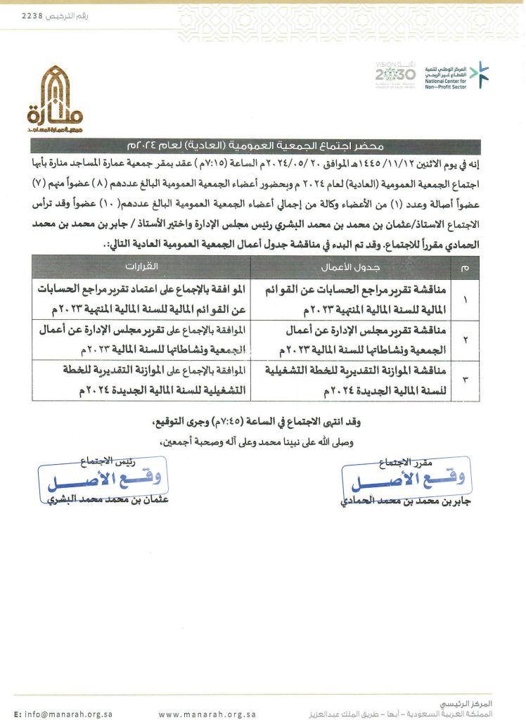 محضر اجتماع الجمعية العمومية العادية لعام 2024