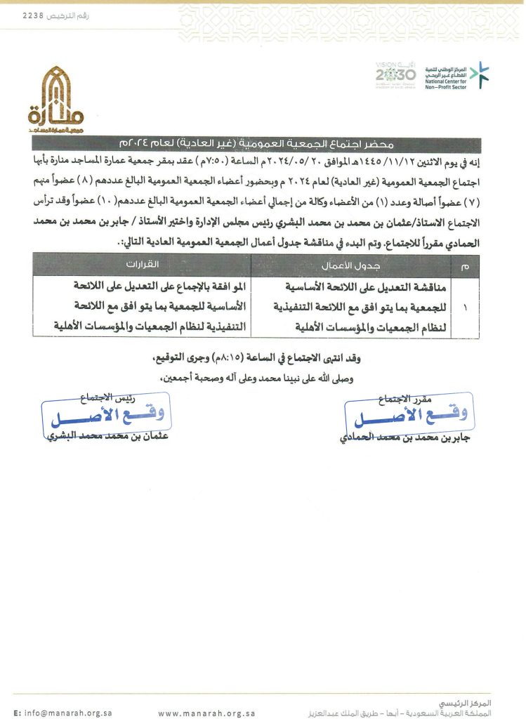محضر اجتماع الجمعية العمومية غير العادية لعام 2024